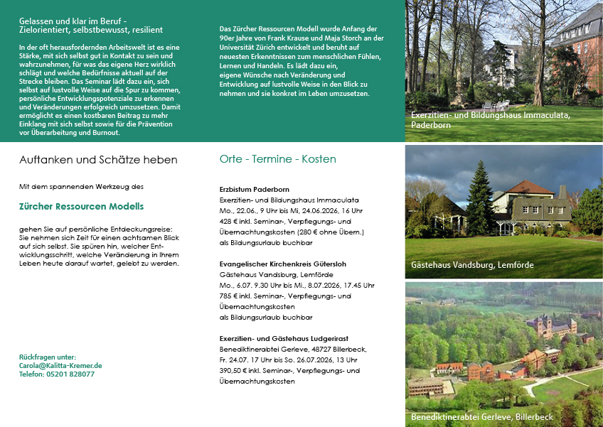 Work-Life-Balance in den Griff zu bekommen. Da das ZRM-Training nur einen formalen Rahmen vorgibt und die Inhalte von den Klienten frei eingebracht werden können, ist es universell einsetzbar. Es